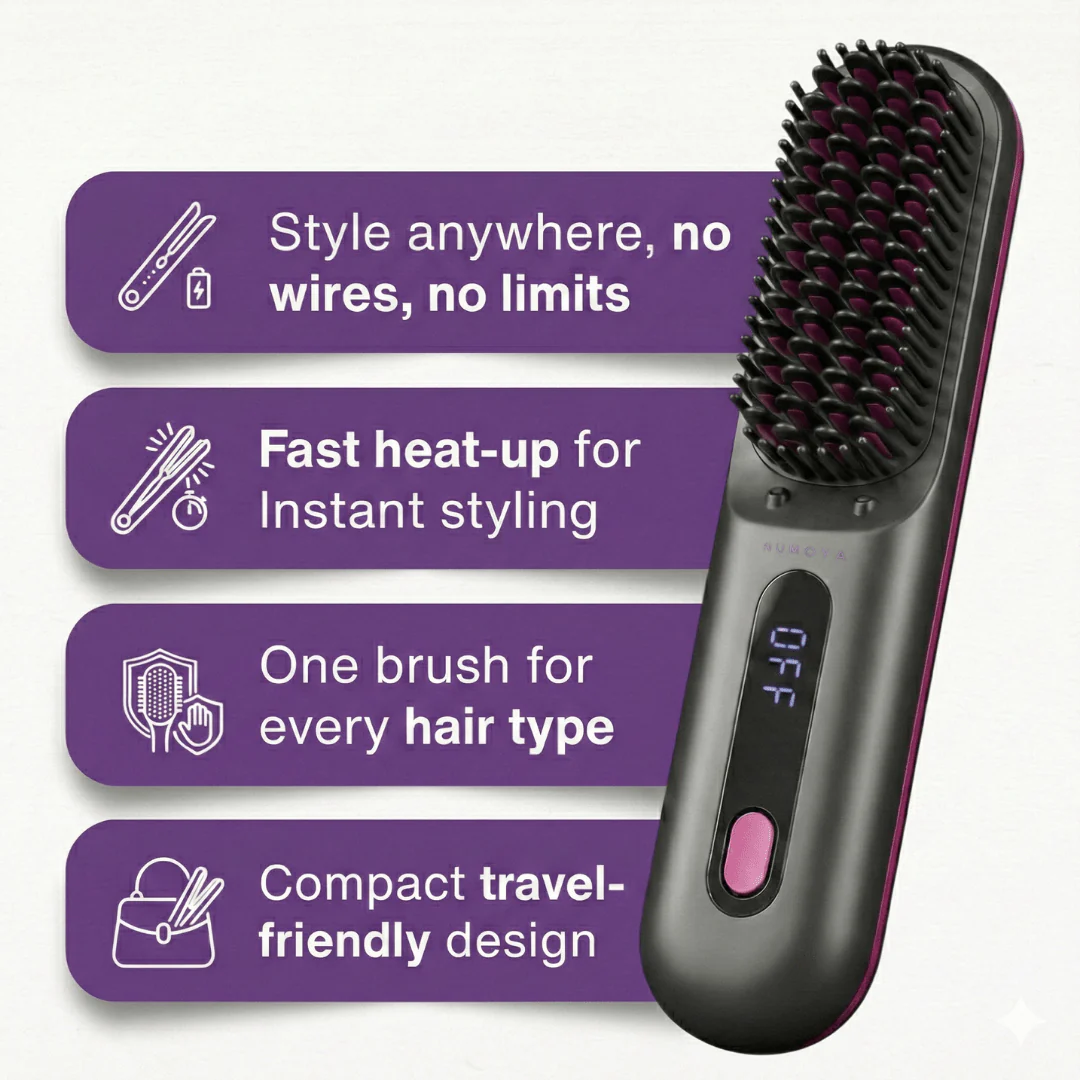 [NEW] Numoya Portable Straightener Brush - GoBrush PRO + Free Leather Pouch